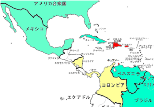 イスパニョーラ島の3/2を占めていて、右側がドミニカ共和国、左側がハイチとなっています。